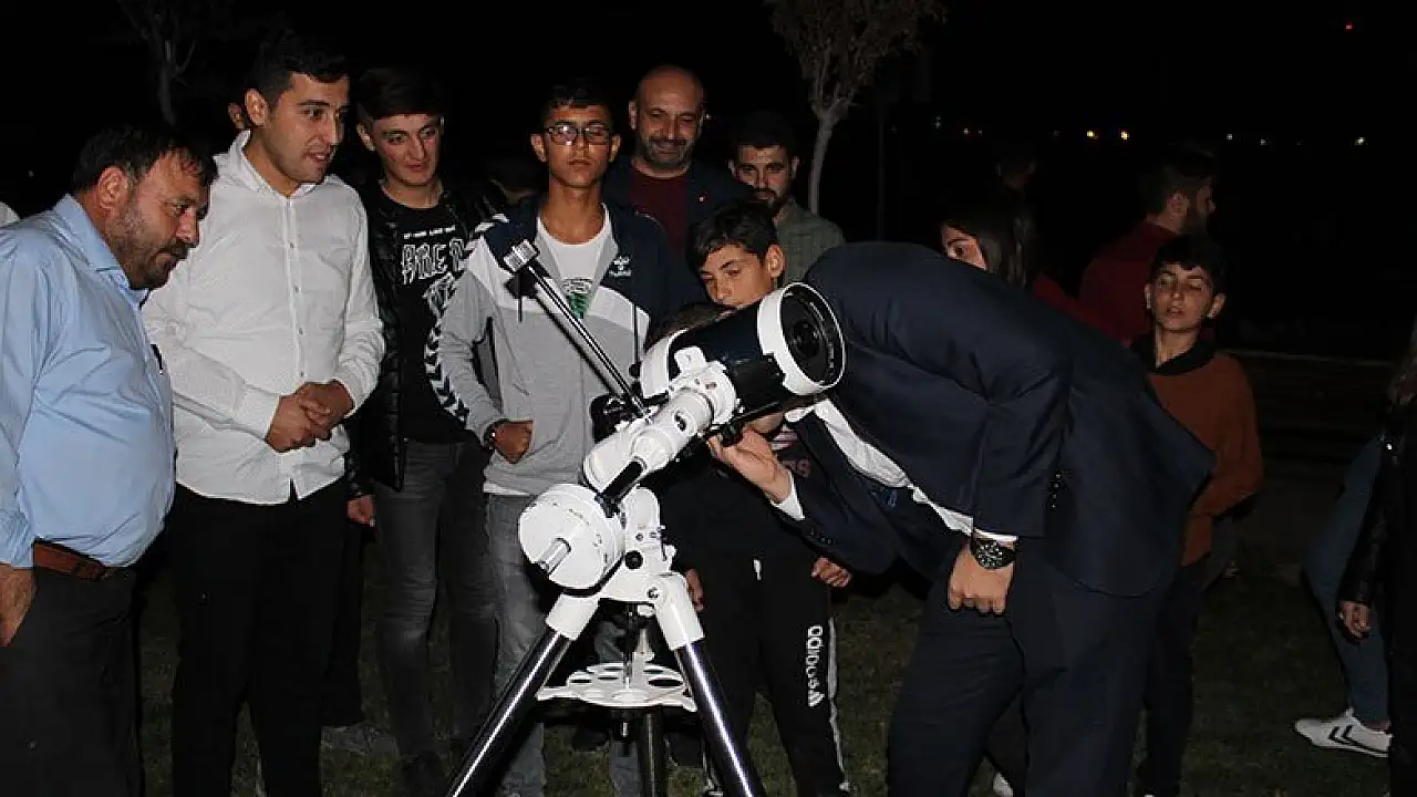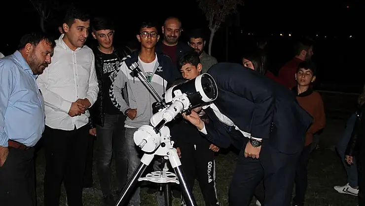 Güneş, ay, yıldızlar ve diğer gökyüzü cisimlerinin teleskoplarla izlendiği etkinliğe öğrenciler ve davetliler yoğun ilgi gösterdi.