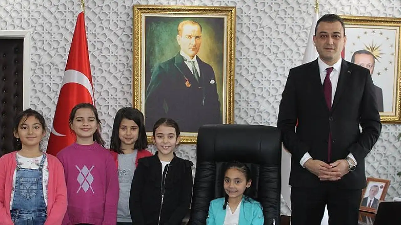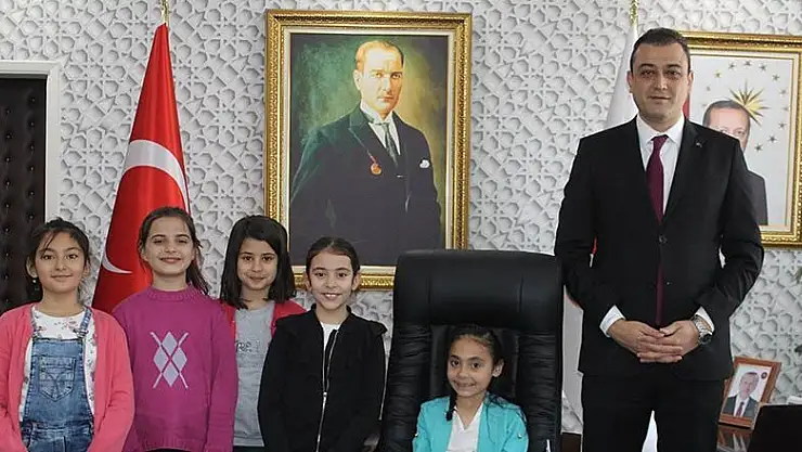 İlçede öğrenim gören öğrenciler, kamu kurumlarını ziyaret ederek temsili olarak makamlara oturdu.