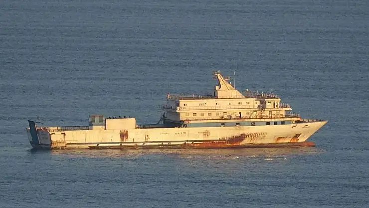Çanakkale'nin Bozcaada ilçesi açıklarında 2 Yunanistan Sahil Güvenlik unsuru tarafından taciz ateşi açılan 'Anatolian' isimli Ro-Ro gemisi Karanlık Liman'a demirleyen gemi gündüz görüntülendi.
