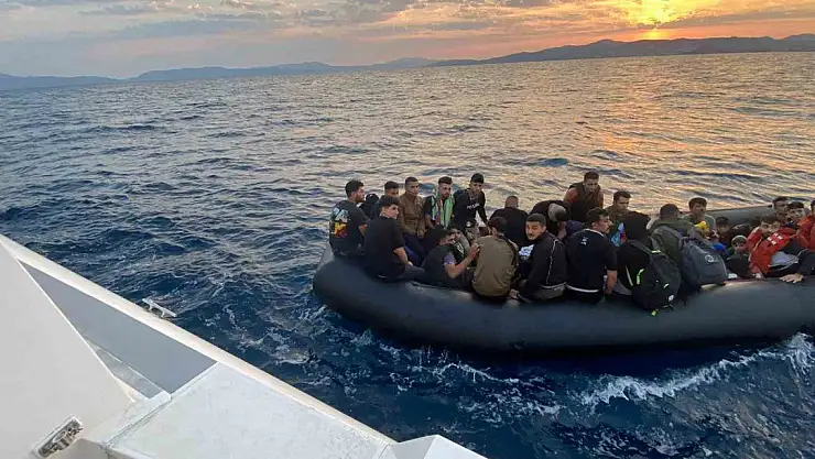 Aydın'ın Kuşadası ilçesinde lastik bot içerisindeki 39 düzensiz göçmen kurtarıldı.