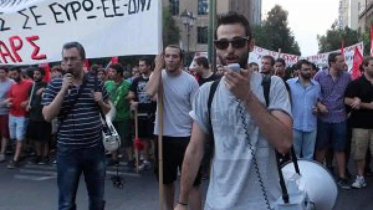Ellerinde "PAME" yazılı bayraklar taşıyan göstericiler, "Yeni barbar memoranduma hayır", "Krizi plütokratlar ödesin", "Plütokrasi için başka fedakarlık yok" ve "AB ile IMF memorandumlarına hayır" şeklinde sloganlar attı.