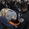 Polisin, göstericilere göz yaşartıcı gaz ile müdahalesi sırasında çıkan arbedede, yaralanan bir kadın hastaneye kaldırıldı.