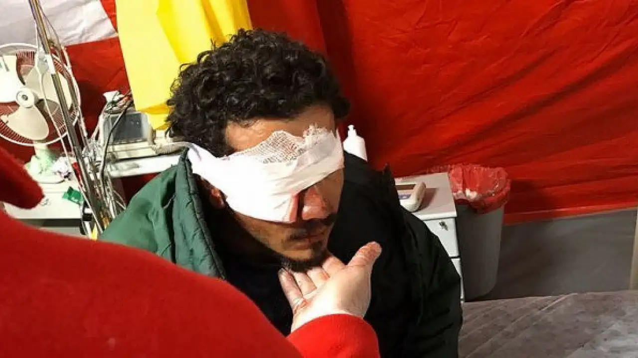 Yunan askeri birliklerince atılan bir plastik mermi ise bir sığınmacının gözüne isabet etti. Arkadaşları tarafından sahra hastanesine taşınan sığınmacıya ilk müdahale burada yapıldı. Sığınmacı ambulansla devlet hastanesine sevk edildi.