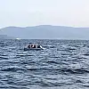 Sahil Güvenlik Komutanlığı tarafından paylaşılan görüntülerde, kaçak göçmenlerin bindiği lastik botun motorunun söküldüğü ve bu nedenle denizin ortasında mahsur kaldığı görüldü.