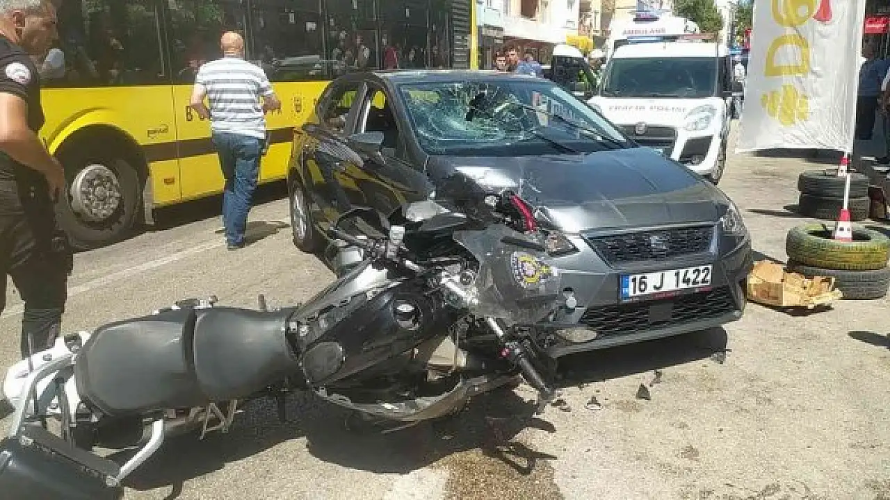 Kaza, saat 15.00 sıralarında merkez Yıldırım ilçesi Selçukbey Mahallesi Selçukbey Caddesi'nde meydana geldi. Edinilen bilgiye göre, seyir halindeki 16 A 4812 plakalı motorize yunus ekipleri ile karşı yönden gelen ve sola dönmek isteyen 16 J 1422 plakalı otomobil kafa kafaya çarpıştı.