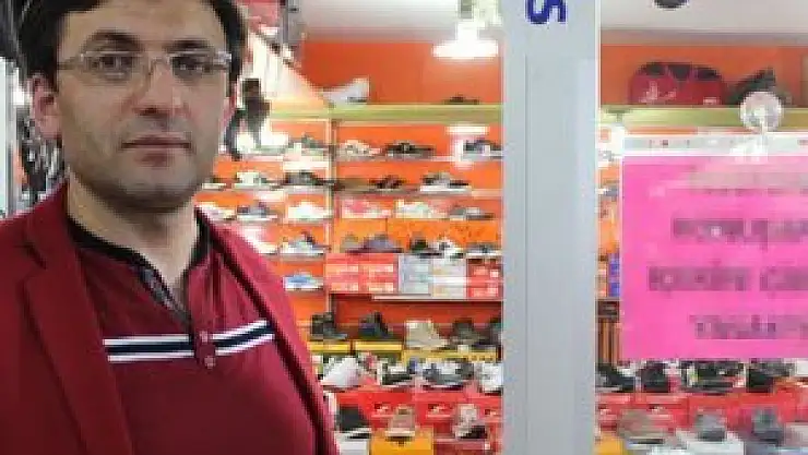 Erzurum'da ayakkabı satıcılığı yapan Yakup Karataş, aldığı ilginç bir kararla müşterilerinin telefonla konuşarak dükkana girmesini yasakladı