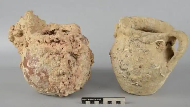 Su altı buluntusu olan çömleklerin Geç Roma ve Bizans dönemlerinde kullanılan çift kulplu kaplar olduğuna işaret edilirken, su altında ele geçen bu tip çömleklerin gemilerin mutfaklarında kullanıldığı belirtildi.