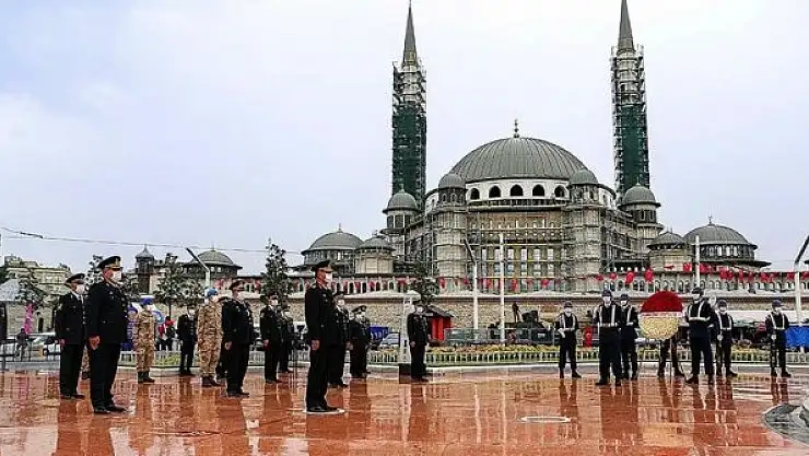 Taksim Meydanı'nda başlayan törende İl Jandarma Komutanı Tuğgeneral Nuh Köroğlu, Taksim Cumhuriyet Anıtı'na çelenk sundu.