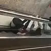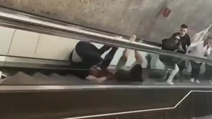 Yürüyen merdivenlerde yuvarlanarak kavga ettiler