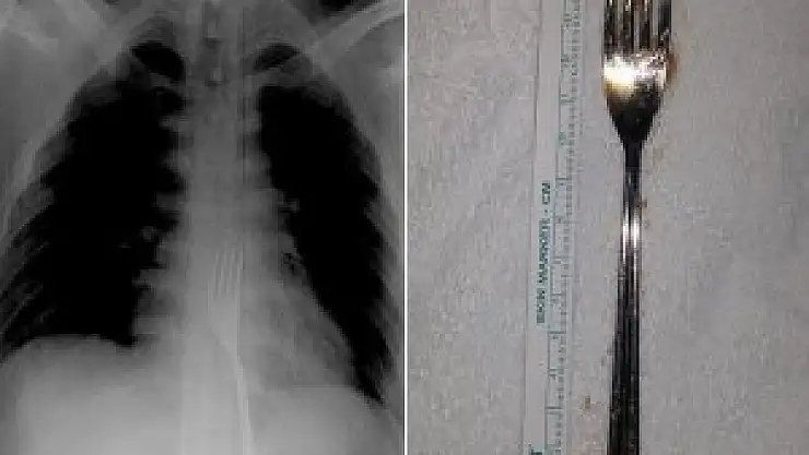 Çekilen röntgen filmlerinde, 15 santimetrelik çatalın midede olduğu görüldü. Metal çatal, O.A'nın midesinden ameliyatla çıkarıldı. O.A, taburcu edildi.