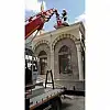 Konya'nın Beyşehir ilçesinde, cami kubbesinde bulunan yuvadan annesi tarafından atıldığı düşünülen yaralı yavru leylek düştüğü yerden itfaiye ekipleri tarafından kurtarıldı.