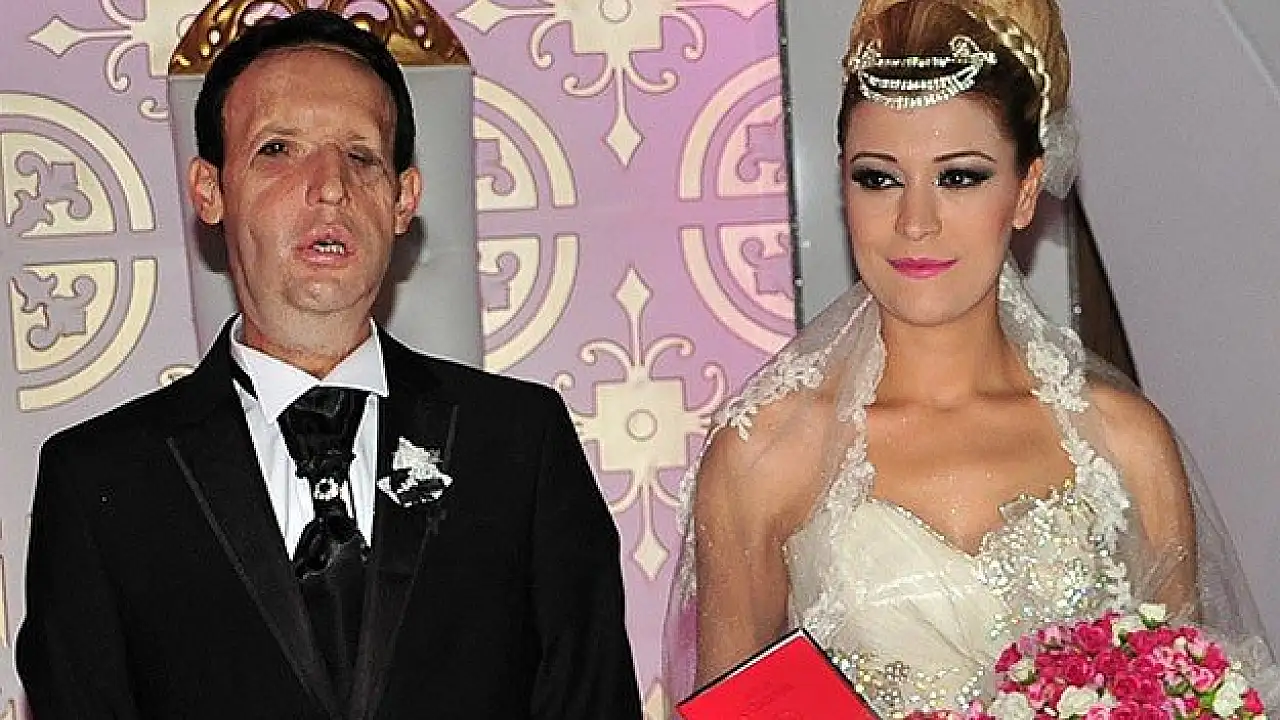 Türkiye'nin 5'inci yüz ve ilk çene nakli yapılan Sert, Bursa'nın İnegöl ilçesinde düzenlenen törenle hayatını Esma Akyurt ile birleştirdi.