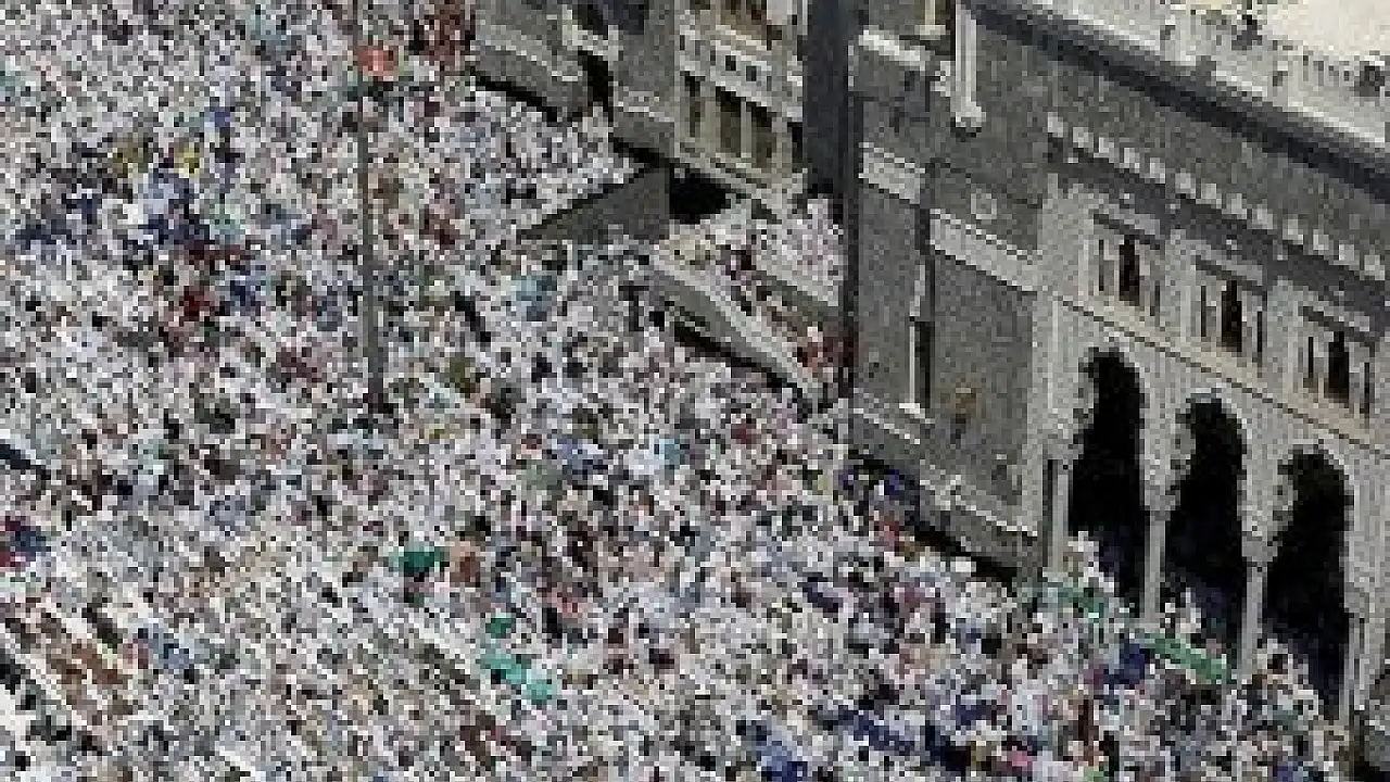 Hac farizasını yerine getirmek üzere kutsal topraklarda bulunan yüzbinlerce hacı adayı, cuma namazını Mescid-i Haram'da eda etti.