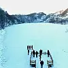 Yüzeyi buz tutan Ulugöl'e ziyaretçi akını
