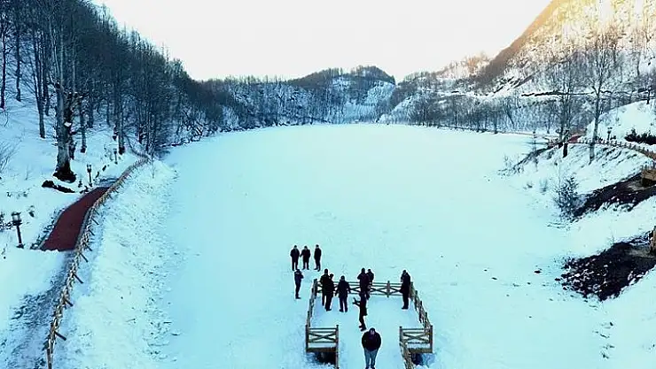 Ordu’nun doğal güzelliğiyle bilinen, Türkiye'nin 36'ncı tabiat parkı ilan edilen ve soğuk hava nedeniyle yüzeyi buz tutan Ulugöl ziyaretçi akınına uğruyor.