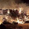Şanlıurfa'nın Ceylanpınar ilçesinde yüzlerce ton saman balyası yanarak küle döndü.