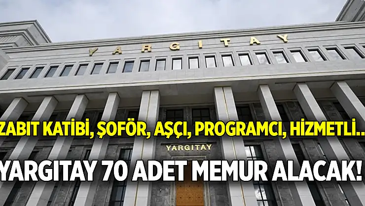 Yargıtay Başkanlığı aralarında Zabıt Katibi, şoför, aşçı, programcı, hizmetli gibi çeşitli meslek dallarına sahip 70 adet memur alacak!