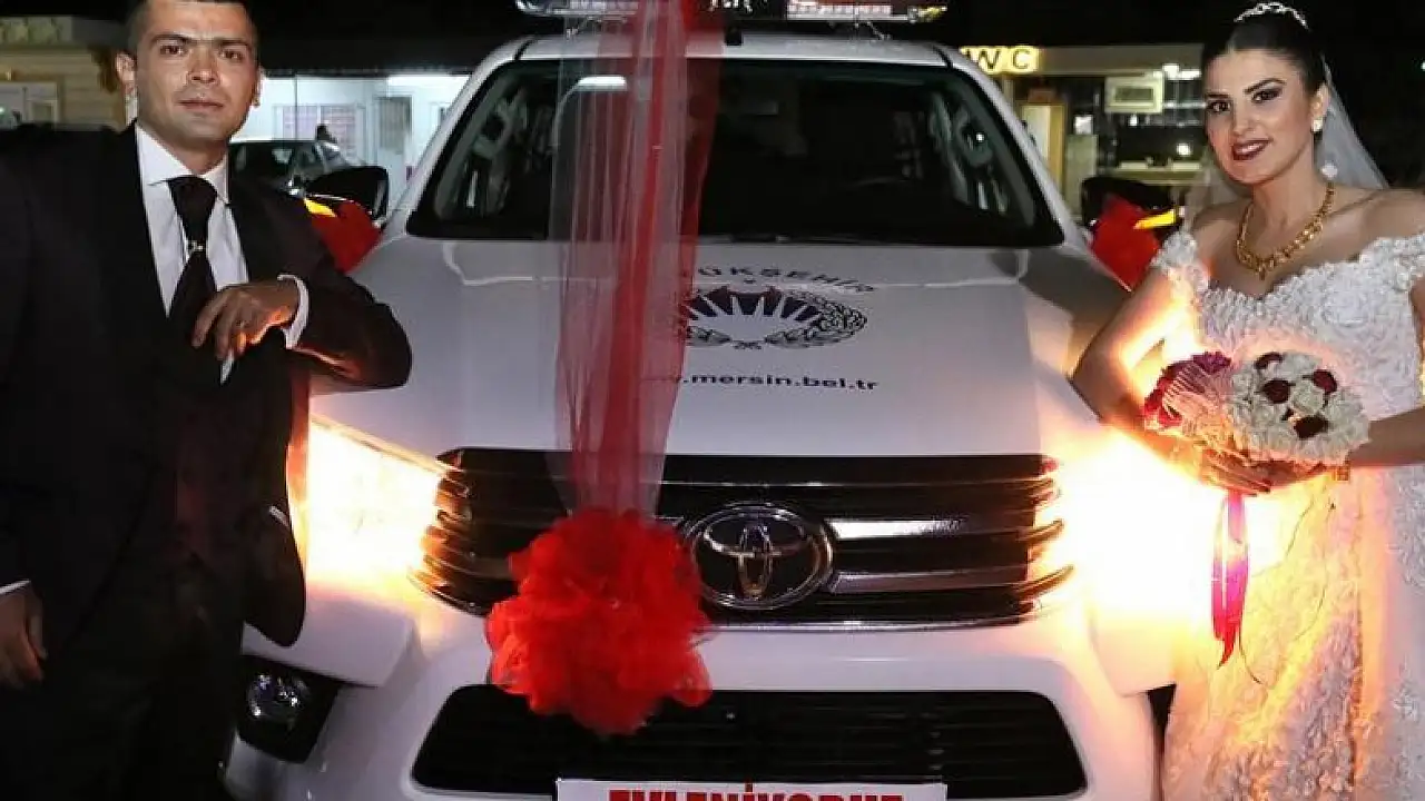 Görev aracını "Gelin arabası" olarak kullanmak isteyen Özer, Mersin Büyükşehir Belediye Başkanı Burhanettin Kocamaz'ın izniyle hayaline kavuştu.