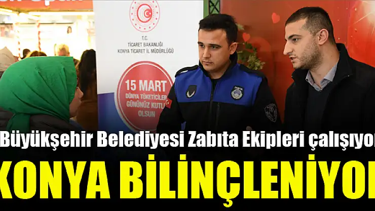 Konya Büyükşehir Belediyesi Zabıta Dairesi Başkanlığı ekipleri Tüketiciyi Koruma Haftası kapsamında Konya Ticaret İl Müdürlüğü ekipleriyle birlikte alışveriş merkezlerinde ve okullarda tüketici bilgilendirme faaliyetleri gerçekleştiriyor.