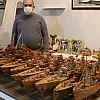 "Bunların hepsi askeri gemiler, bunlardan biri de 'Gazi Alemdar Gemisi'. Kendisi de bahriyeli askermiş, yurt dışına çeşitli görevlere gitmiş. Burada gördüğü gemilerin birebir orijinalini yapmış. Evimde bu eserleri sergiliyorum, bakımlarını yapıyorum, tozlarını alıyorum. Elimden geldiği kadar bunları muhafaza etmeye, benden sonra oğluma, oğlumun da kendi çocuklarına vereceği şekilde bunlara sahip çıkmaya çalışıyorum. Şu anda oğlumla birlikte sahil güvenlik botu yapıyoruz. Tamamen oyma olduğu için az az oymak zaman alıyor. 3-4 aylık bir zaman diliminde biter diye düşünüyorum."
