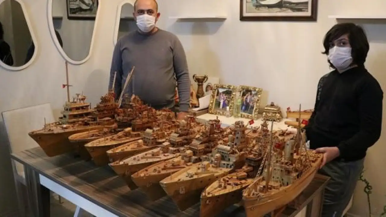 Aile büyüğünden kalma, aralarında savaş gemilerinin de bulunduğu maket gemilere gözü gibi bakan baba-oğul, gemilerin sayısının artırarak hem sergi açmayı hem de bu mirası geleceğe taşımayı hedefliyor.