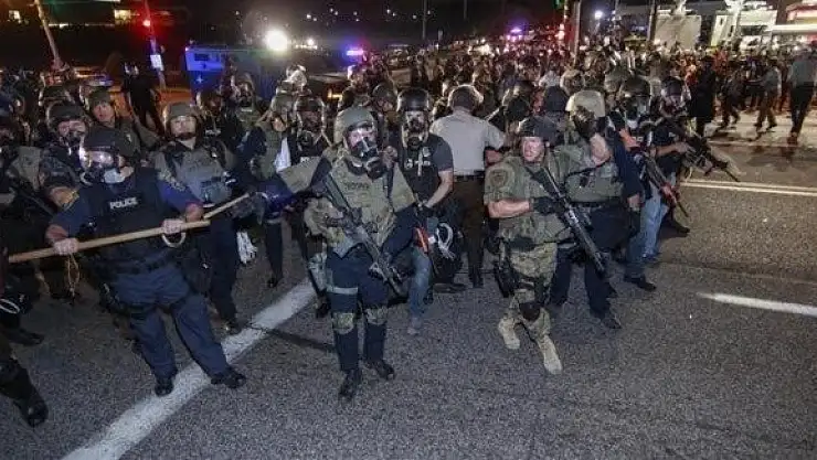 ABD'de 18 yaşındaki silahsız siyahi Michael Brown'ın polis tarafından öldürülmesi sonrası olayların patlak verdiği Ferguson kentinde polis, vatandaşa karşı sert müdahaleye devam ediyor. Sokaklara dökülen halkın karşısına ağır silahlarla çıkan ABD polisine tüm dünyadan tepkiler yağıyor.