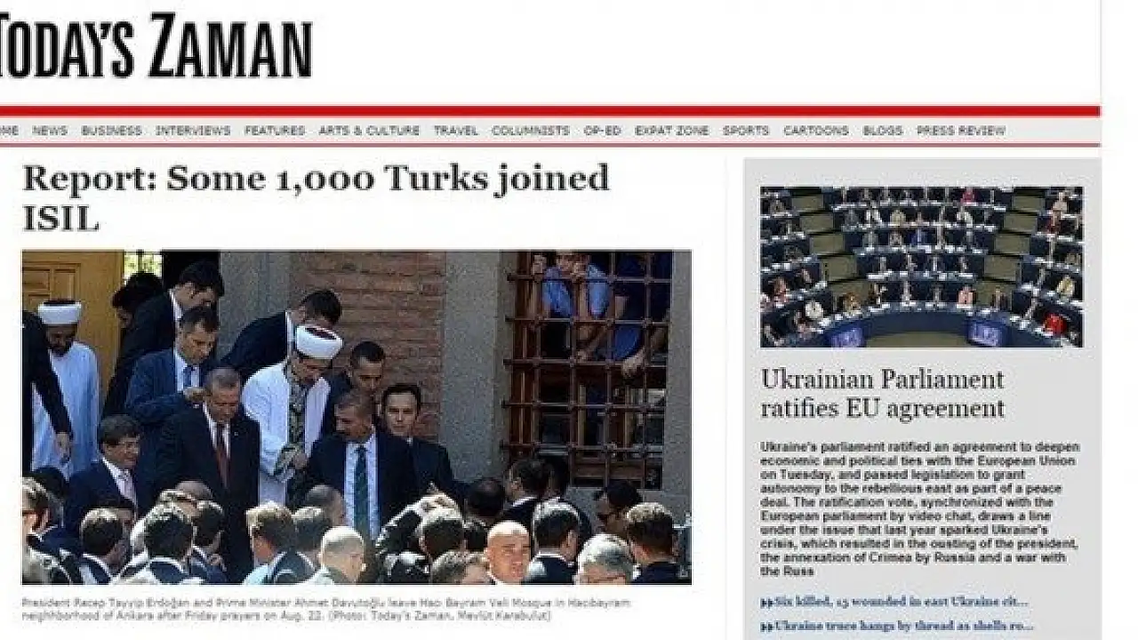 New York Times'in Ceylan Yenisu imzalı haberini rapor olarak sunan Today's Zaman kendi muhabirlerinin, Erdoğan ve Davutoğlu'nun camiden çıkarken çektiği fotoğrafını kullanıp, "Some 1,000 Turks joined ISIL/ Yaklaşık 1000 Türk IŞİD'e katıldı" başlığını attı.