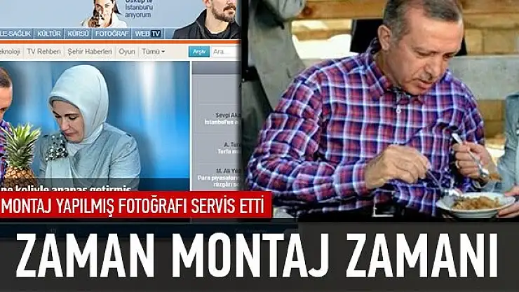 Başbakan Recep Tayyip Erdoğan ve eşi Emine Erdoğan'ın birlikte çekilmiş fotorafına ananas montajı yapılmış fotoğrafı okuyucularına servis eden Gazete rota haberi kaynak gösterdi. zaman.com.tr alıntı yaptığı haberle Erdoğan'a gönderme yaptı.
