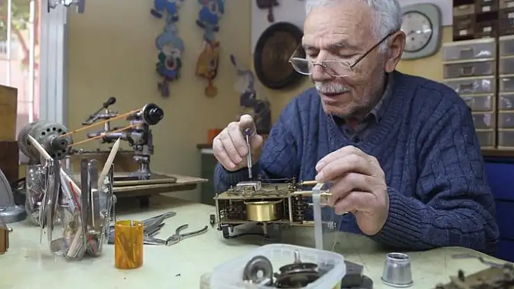 Adana'da 11 yaşında çırak olarak başladığı mesleğini yurt dışı da dahil olmak üzere 62 yıldır sürdüren saatçi, atölyesinde zamana direniyor.