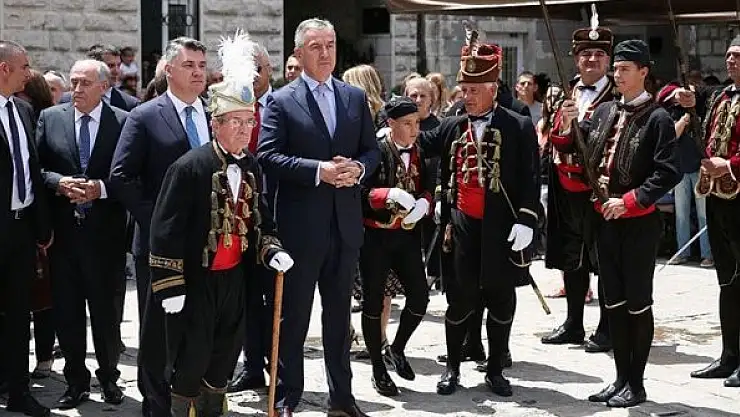 Milanović i predsjednik Crne Gore Milo Đukanović su na trgu ispred katedrale Svetog Tripuna u Kotoru obavili smotru počasnog odreda Bokeljske mornarice čiji su pripadnici potom odigrali tradicionalno kolo.