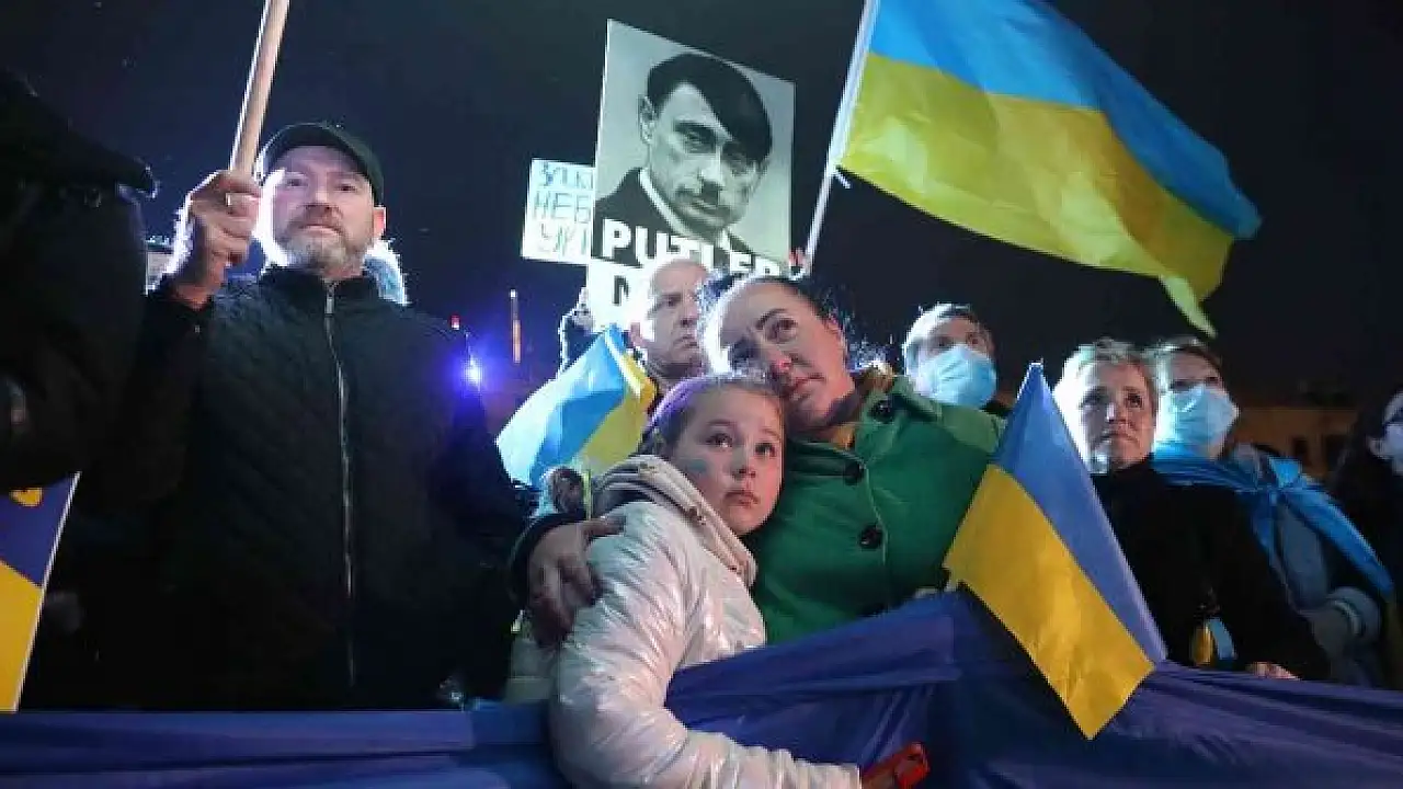 Zelenskiy'nin konuşması sırasında Ukrayna'ya destek gösterisi yapıldı