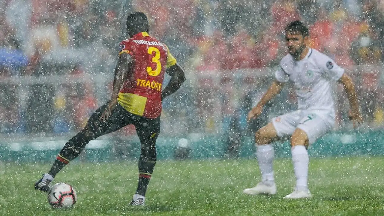 İzmir'deki yağmurlu hava, Göztepe ile Atiker Konyaspor arasında oynanan maçı da etkiledi