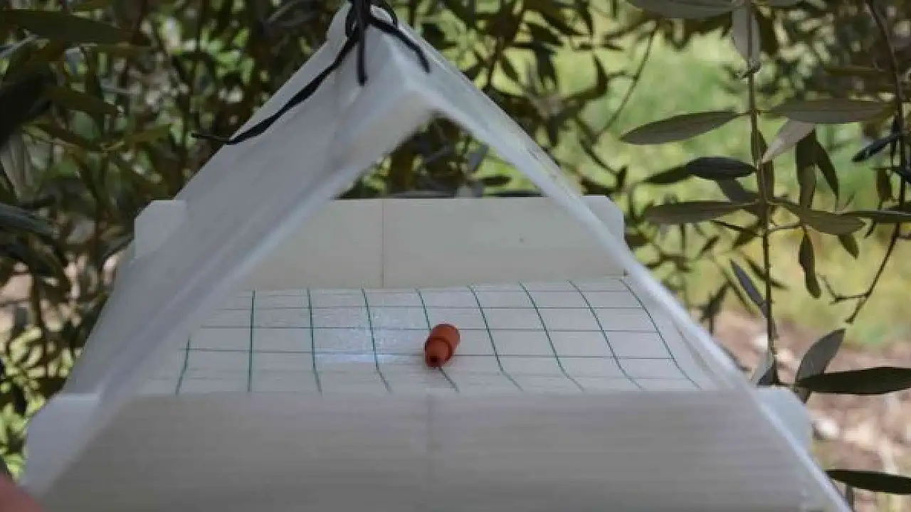 Zeytin ağaçlarında hastalık ve zararlıların tespiti için tuzak asılıyor
