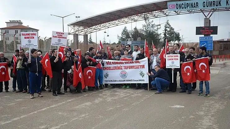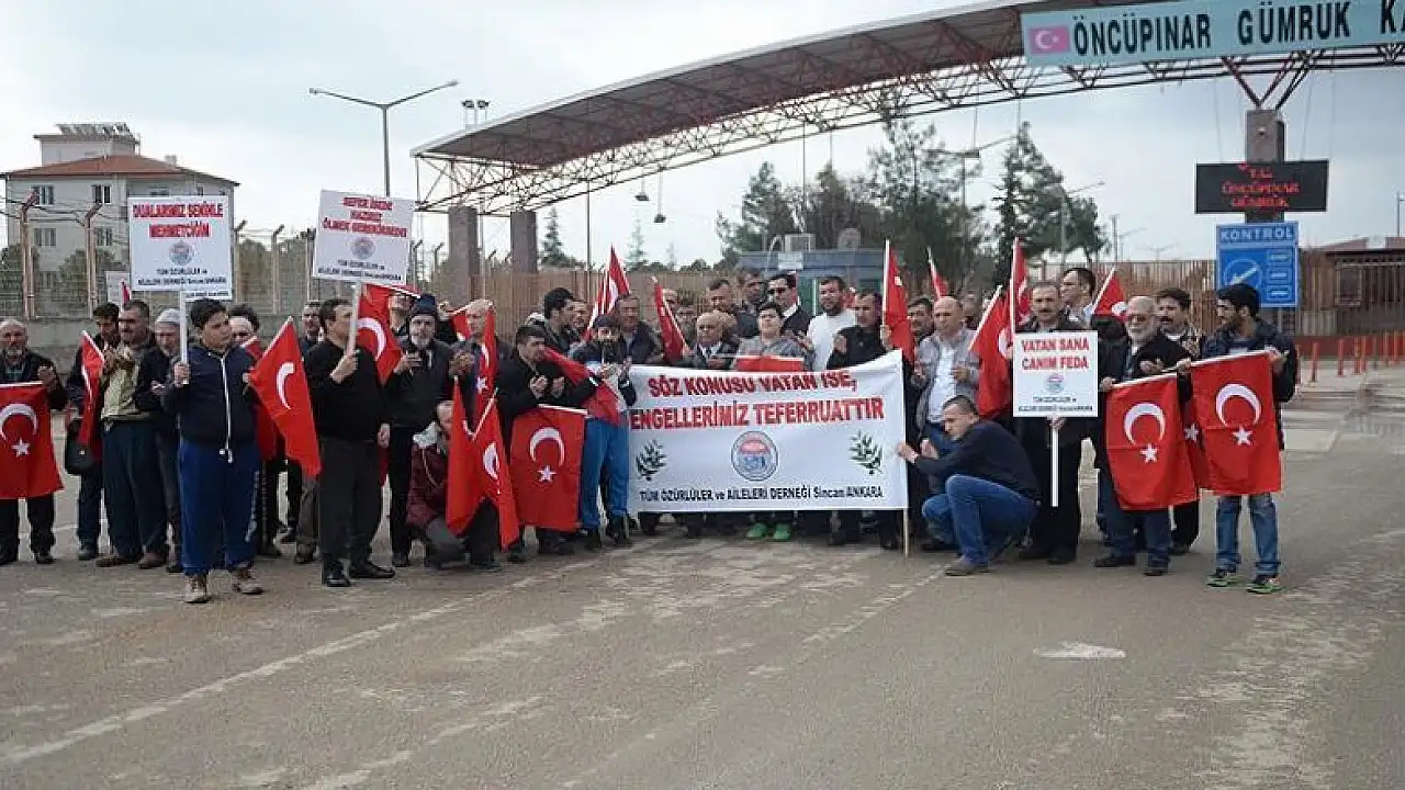 Tüm Özürlüler ve Aileleri Sosyal Yardımlaşma Derneği (TÜMÖZDER) üyesi bir grup engelli vatandaş, Kilis'teki Öncüpınar Sınır Kapısı'na gelerek Türk Silahlı Kuvvetlerinin (TSK) Suriye'de yürüttüğü Zeytin Dalı Harekatı'na destek verdi.