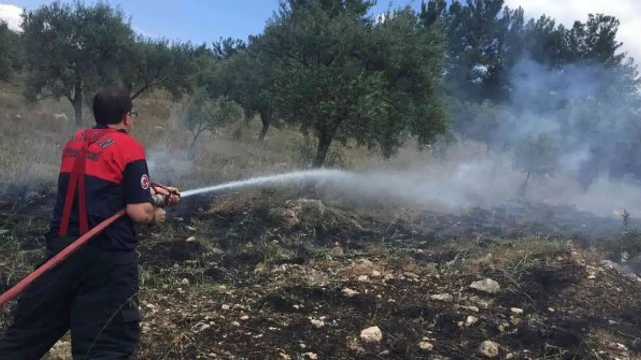 Zeytinlik alanda çıkan yangın ormana sıçramadan söndürüldü
