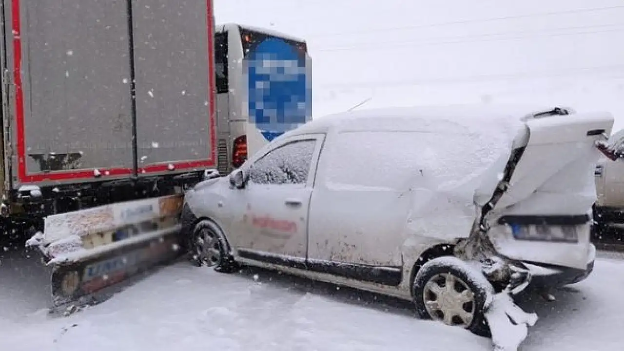 Zincirleme kaza! Kar nedeniyle 24 araç birbirine girdi!