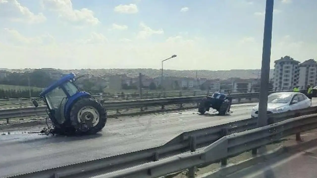 Zincirleme kazada, traktör ikiye bölündü