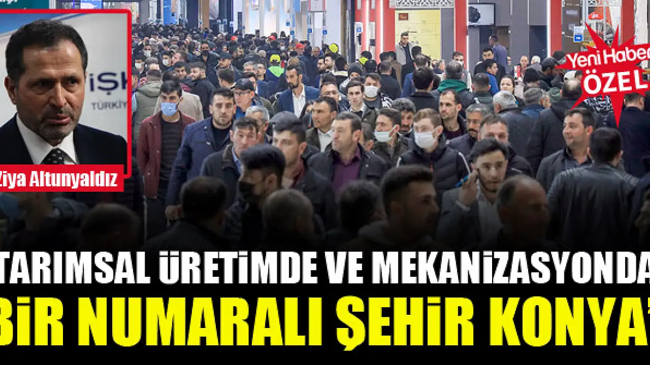 TÜYAP Konya Fuarcılık tarafından düzenlenen 18. Tarım, Tarımsal Mekanizasyon ve Tarla Teknolojileri Fuarı başladı. AK Parti Konya Milletvekili Ziya Altunyaldız, Yeni Haber'e özel yaptığı açıklamada, 'Tarımsal üretimde ve mekanizasyonda bir numaralı şehir Konya' dedi.