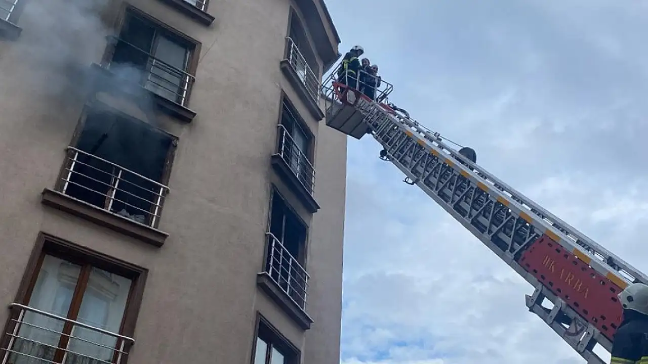 Yangına kısa sürede müdahale eden itfaiye ekipleri, binadaki 15 öğrenciyi merdiven yardımıyla apartmandan tahliye etti.