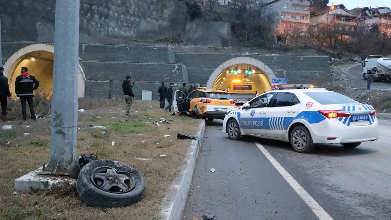 Kaza, akşam saatlerinde kent merkezi ile Kilimli ilçesini birbirine bağlayan Prof. Dr. Şaban Teoman Duralı-2 Tüneli girişinde meydana geldi. Emirhan B. idaresindeki 67 AC 046 plakalı otomobil ile aynı istikamette ilerleyen T.A. idaresindeki 59 T 2787 plakalı taksi çarpıştı. Taksi çarpışmanın etkisiyle refüje çıkarken, otomobil de refüje çıkarak aydınlatma direğine çarptıktan sonra takla atıp tünel girişine çarptı. Kazada otomobil sürücüsü Emirhan B., aynı araçta bulunan B.A. ile A.Ş.Ş. yaralandı. Sağlık ekiplerinin müdahalesinin ardından Atatürk Devlet Hastanesi'ne kaldırılan 3 kişi tedavi altına alındı.