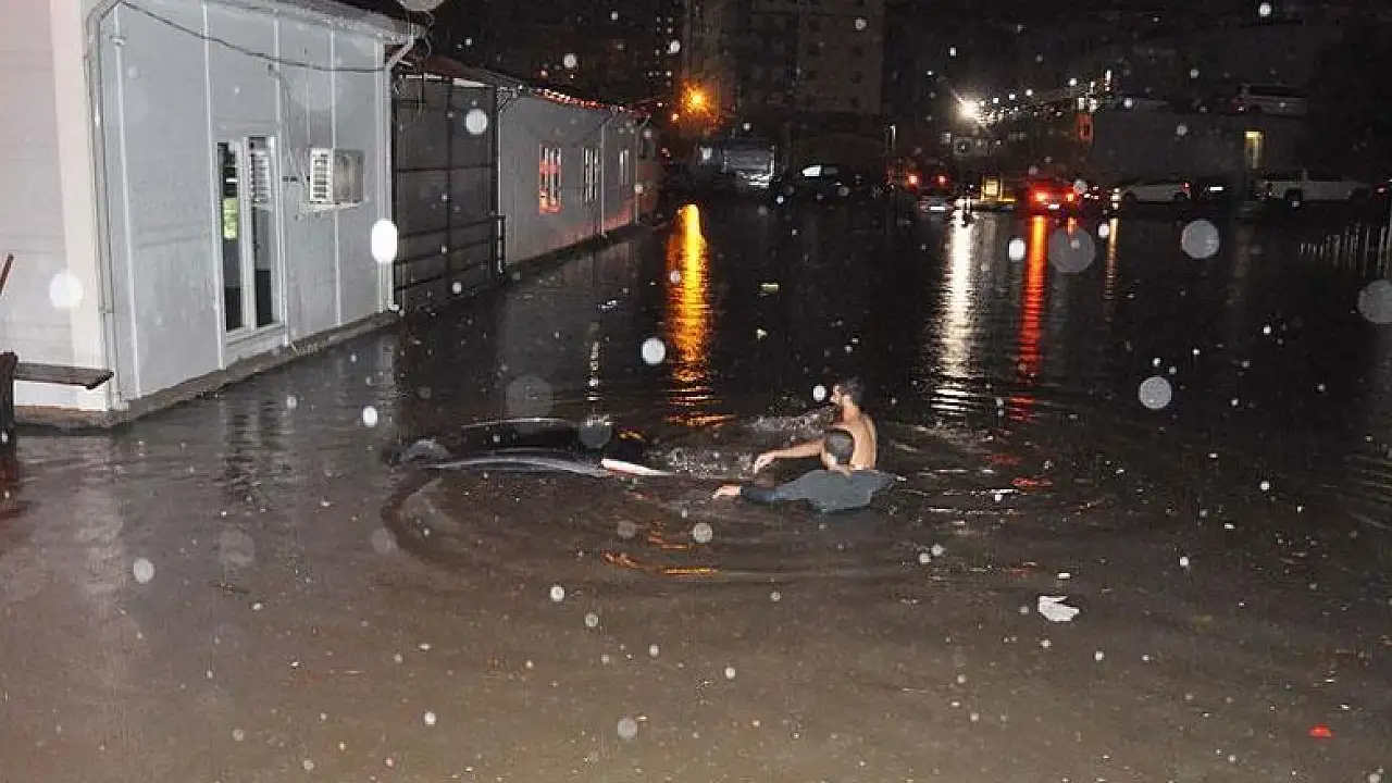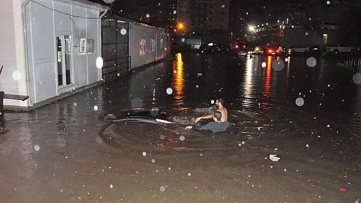 Zonguldak'ın Ereğli ilçesinde etkili olan sağanak nedeniyle bazı ev ve iş yerlerini su bastı, vatandaşlar su altında kalan araçlarına yüzerek ulaşmaya çalıştı.