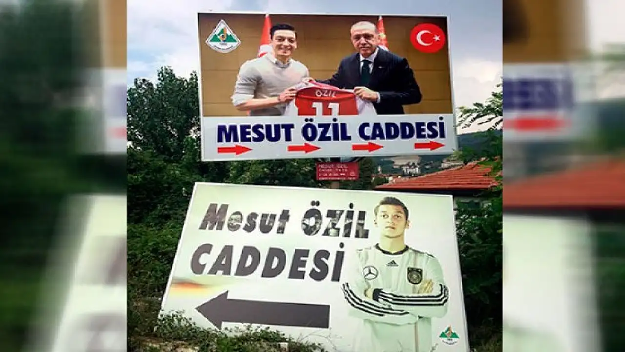 Türk asıllı futbolcu Mesut Özil'in 'Mesut Özil Caddesi' tabelasında bulunan Alman milli formalı fotoğrafını kaldırarak yerine Cumhurbaşkanı Recep Tayyip Erdoğan ile birlikte çektirdiği fotoğrafı koydu.